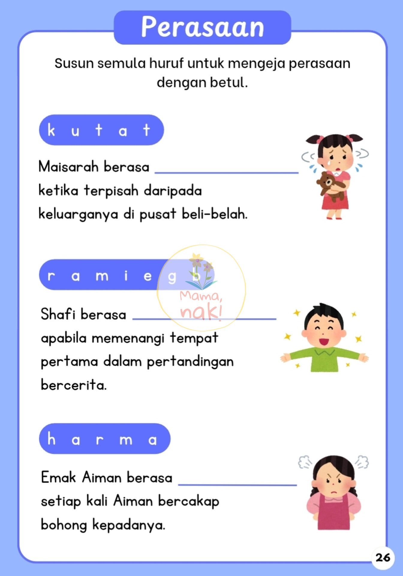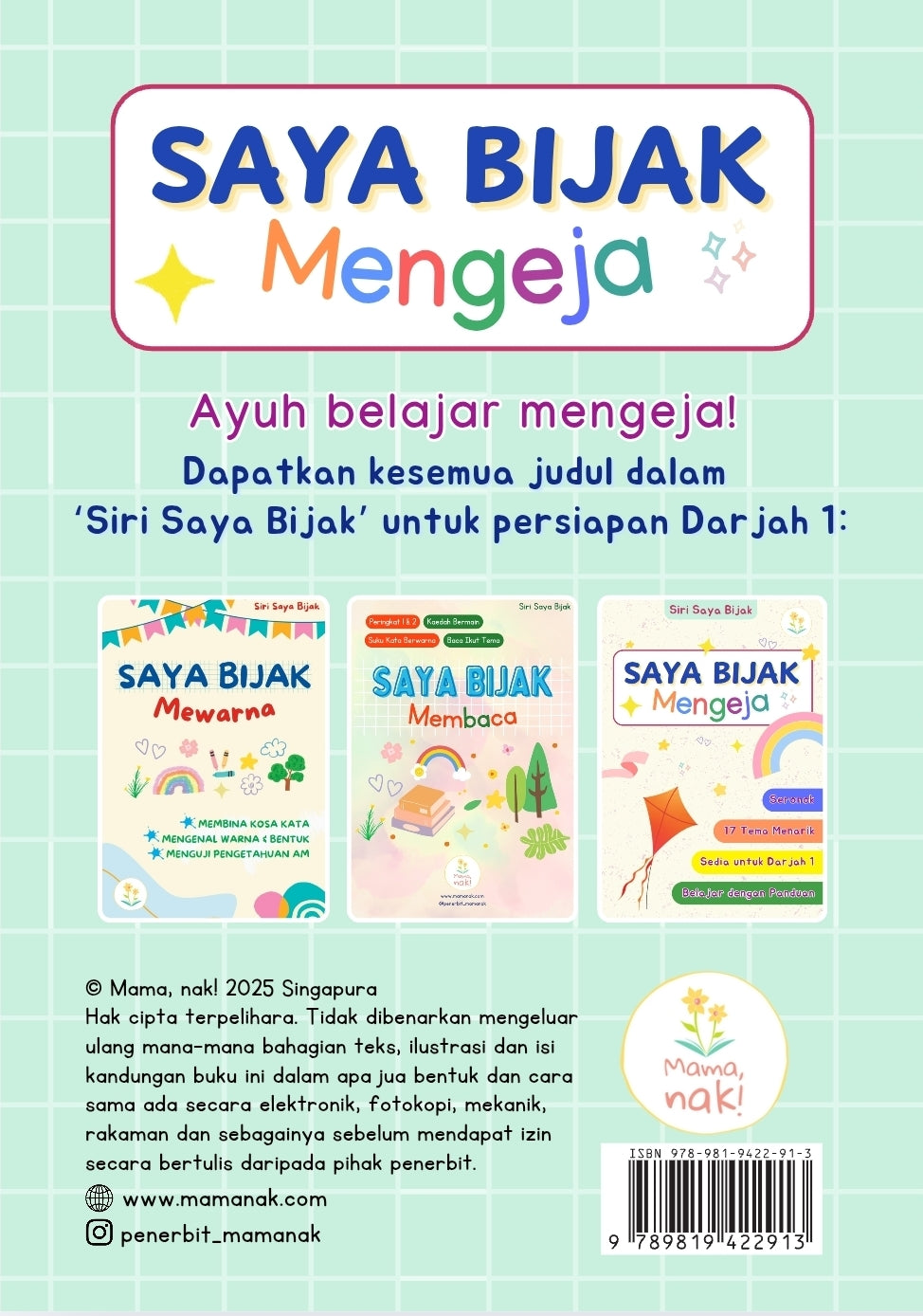 We share with them these spelling techniques in Saya Bijak Mengeja - the third book in Siri Saya Bijak. In this book, they will learn how to spell words from more than 15 themes through fun and engaging activities.